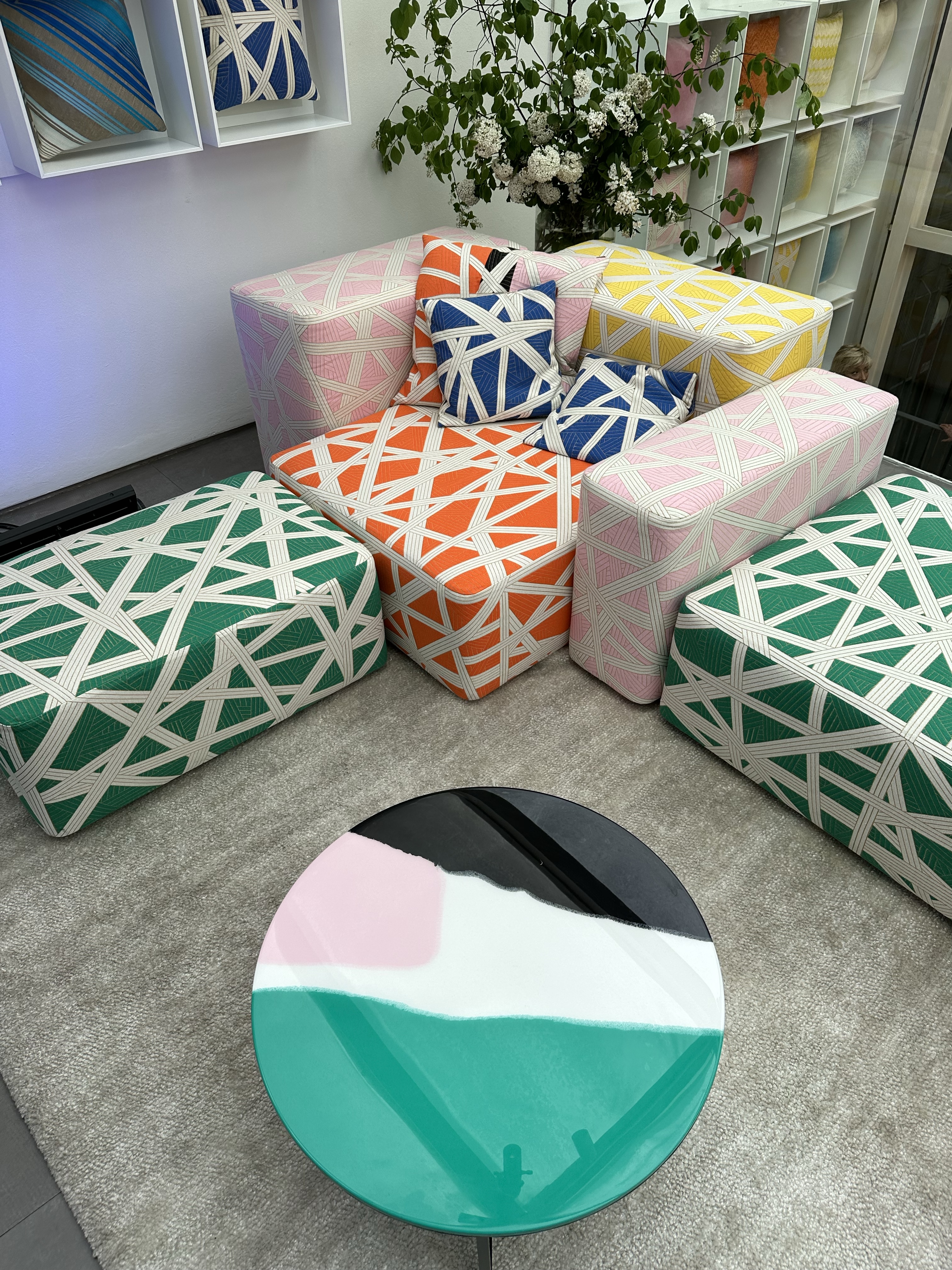 Missoni Home showcased a collection of furniture and accessories that were inspired by the brand’s signature prints and colors. The pieces featured a mix of natural and synthetic materials, such as wool, silk, and leather, and they were characterized by their bold and playful aesthetic.