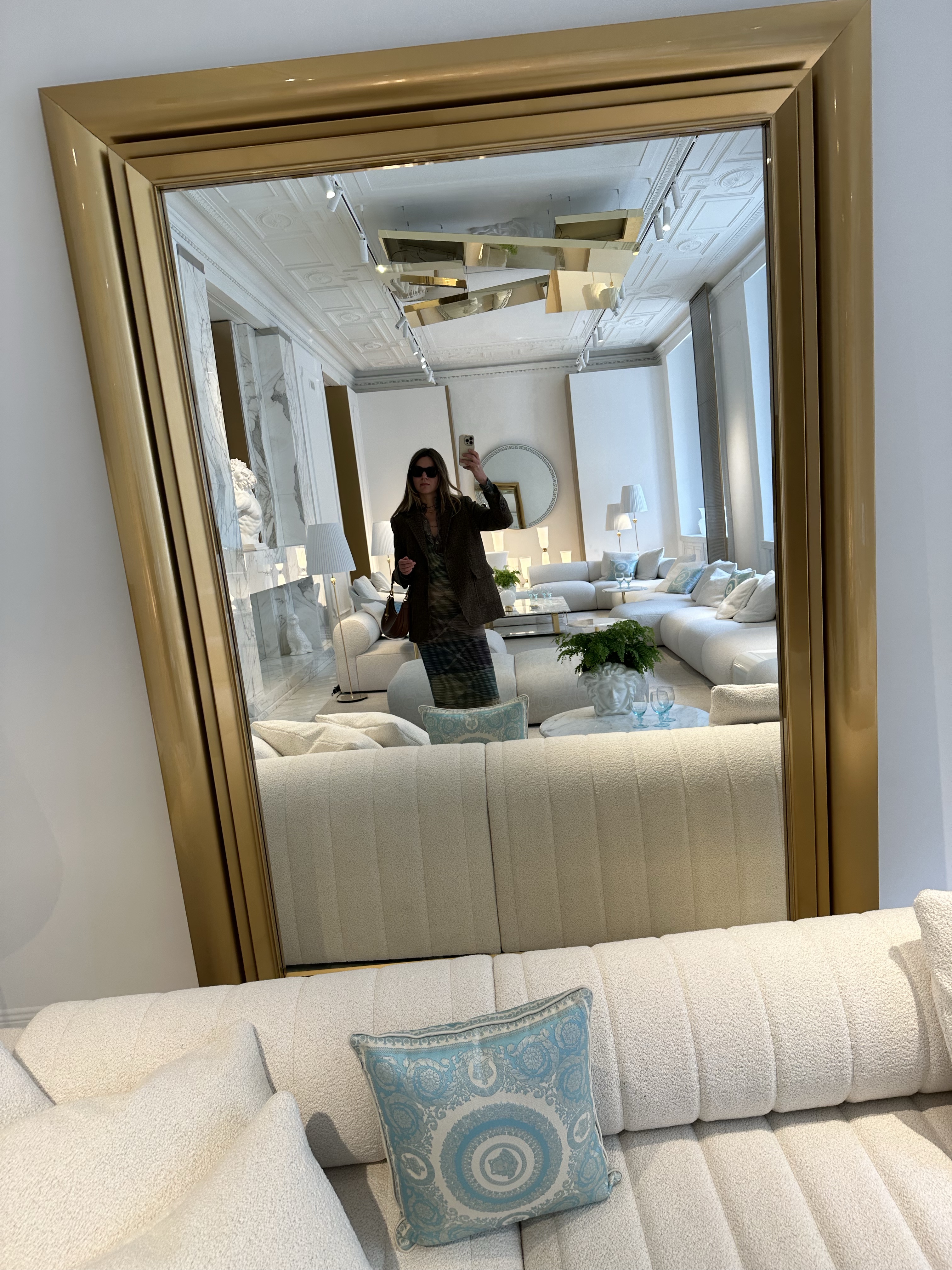 Casa Versace, с другой стороны, был ошеломляющим проявлением роскоши и богатства. На выставке был представлен ряд мебели и аксессуаров, каждая из которых отличалась сложной детализацией, смелыми цветами и высококачественными материалами. Образы были вдохновлены культовыми модными моделями бренда, и они не разочаровали.