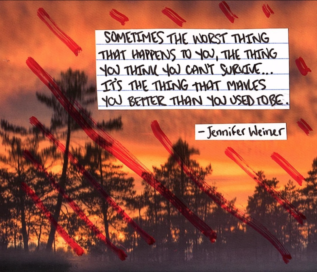 And many times, the thing that you think you cannot survive ends up not killing you. These deeply challenging life experiences that we all go through forge strength and perseverance within us. It is because of our challenging experiences that we become better people.