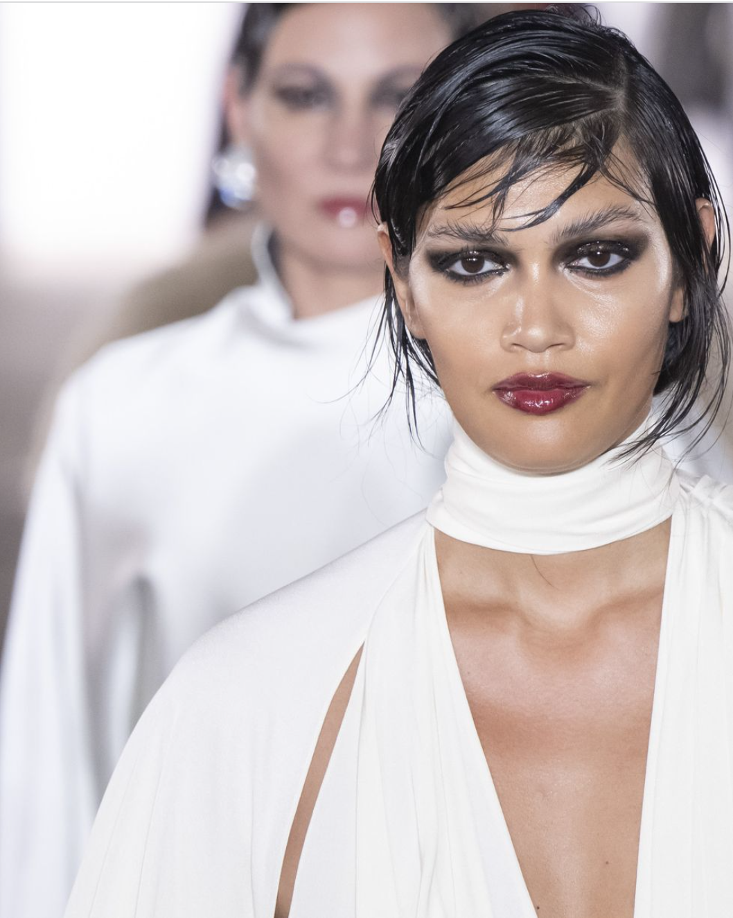 Это как маленькое чёрное платье среди бьюти-трендов. Не матовый, не глянцевый — а идеальный баланс. На подиуме он смотрелся сияюще, изысканно и утончённо, но без перебора.