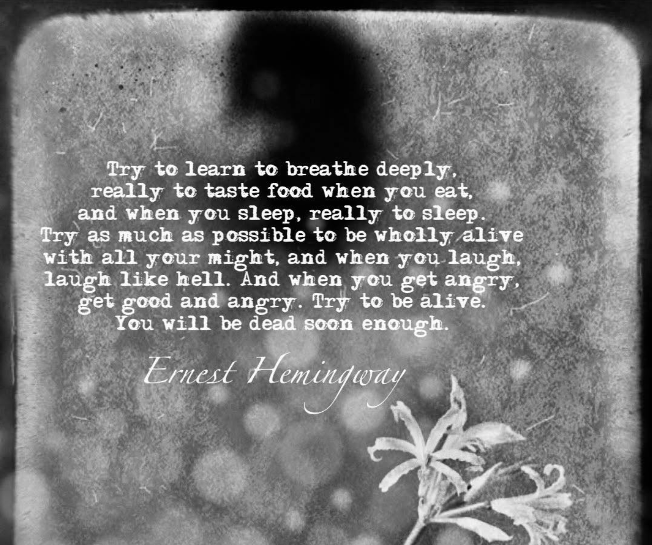Live a life as full as you can! It doesn’t matter if you are in a dingy little apartment or a grand estate, see the beauty in everything, make time to laugh, and if you’re going to be upset or angry then make sure you do it good and well. Experience all of you and that includes all emotions.