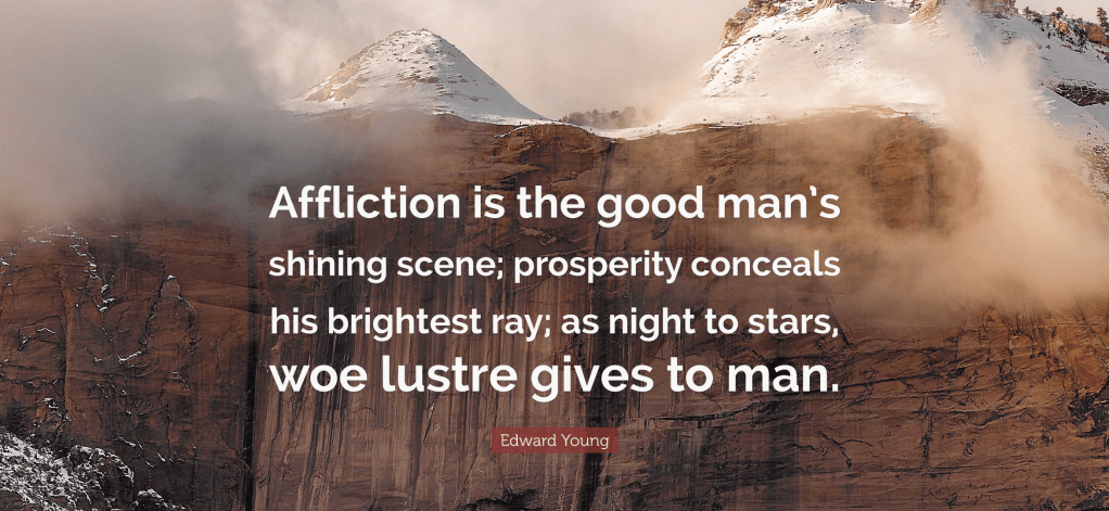 A good man will face affliction with courage no matter how frightened he is, and he will show resilience that might have previously been unknown, even to himself. Affliction can either bring out the worst or the best in people. What is it bringing out in you?