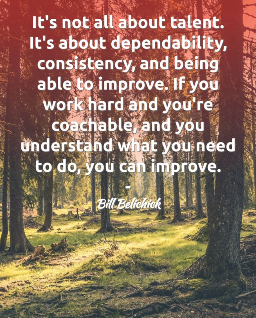 Belichick strips success down to its essentials: talent is secondary. What counts most is being reliable, steady, and humble enough to learn and grow. It matters because talent fades without discipline. Dependability builds trust, consistency creates momentum, and a willingness to improve makes greatness possible for anyone willing to work for it.